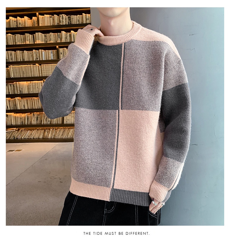 Men's Korean-style Trendy Crew-neck Sweater With Long Sleeves